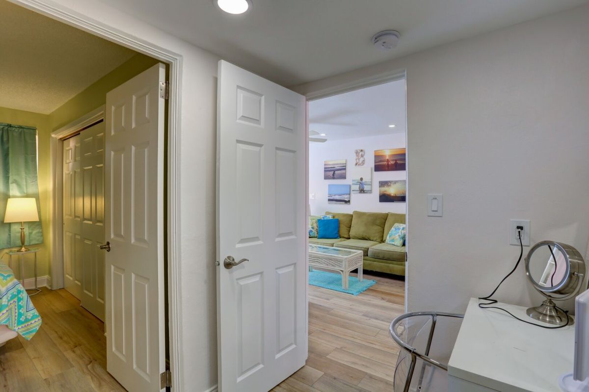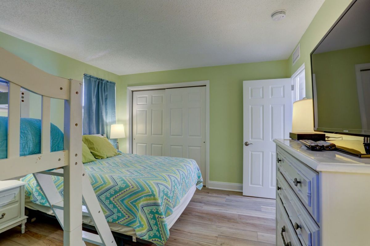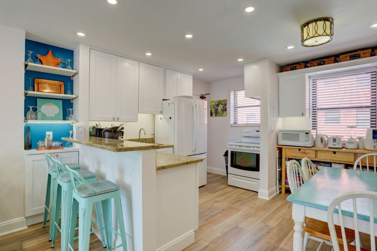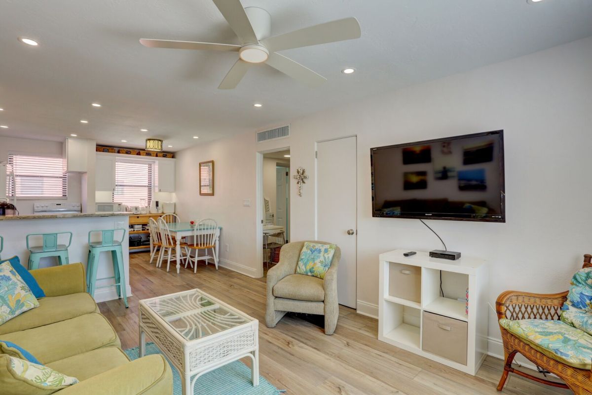This two bedroom condo overlooks the pool with beautiful views of the Gulf. The unit has been recently updated and features granite countertops, luxury vinyl flooring throughout, a TV in each bedroom, High Speed Wi-fi, and more! The main bedroom has a queen size bed. The second bedroom has a queen size bed plus a bunk bed. The living room offers a sleeper sofa for extra guests. This condo has a full kitchen and all the comforts of home. Located on the second floor and accessible by stairs only.